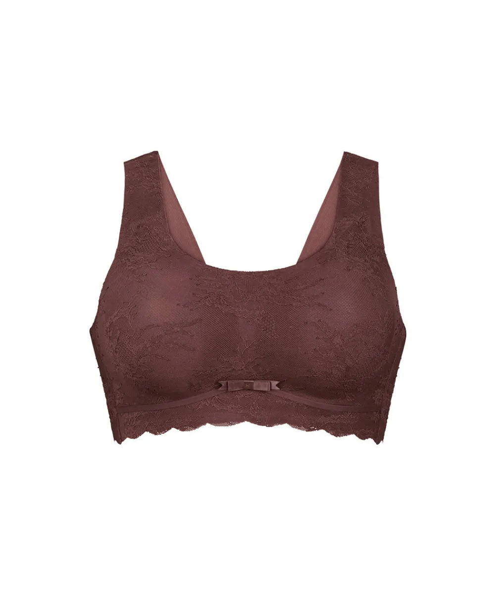 Yndig bralette fra Anita med blomstrede blondelook, subtilt prydet med et delikat silkebånd. Braletten er designet med formstøbte skåle der kan tages ud og justerbare stropper. Braletten kan ikke ses under tætsiddende tøj. Materiale: 61% nylon, 39% elastan; Skåle: 100% polyester