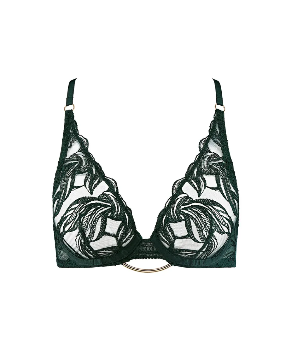 Feminin trekantsbh uden vattering og med bøjle. Bh’en er dekoreret med brodering, der dækker hele skålen. Trekvartskålsbh’en giver god støtte til barmen. Den dækker og holder på plads, men din barm er ikke pakket helt ind. Ofte har trekvart-modellen skråt skåret skåle, som ligger sig flot ind til barmen. Materiale: blonder skåle: 75% polyester, 25% polyamid. Blonder skåle: 90% polyester, 10% polyamid. Blonder bagpå: 65% polyester, 27% polyamid, 8% elastan. Linning: 100% polyester. Tyl i bagstykket: 80% polyamid, 20% elastan.