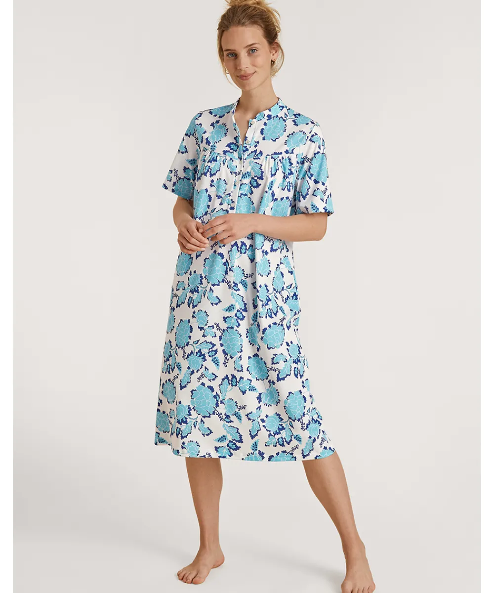 Komfortabel, knælang natkjole med korte ærmer fra Calida. Natkjolen er designet med et skønt print. Natkjolen er lavet i en blød bomuld. Vær obs på størrelsesguide. Materiale: 100% bomuld.