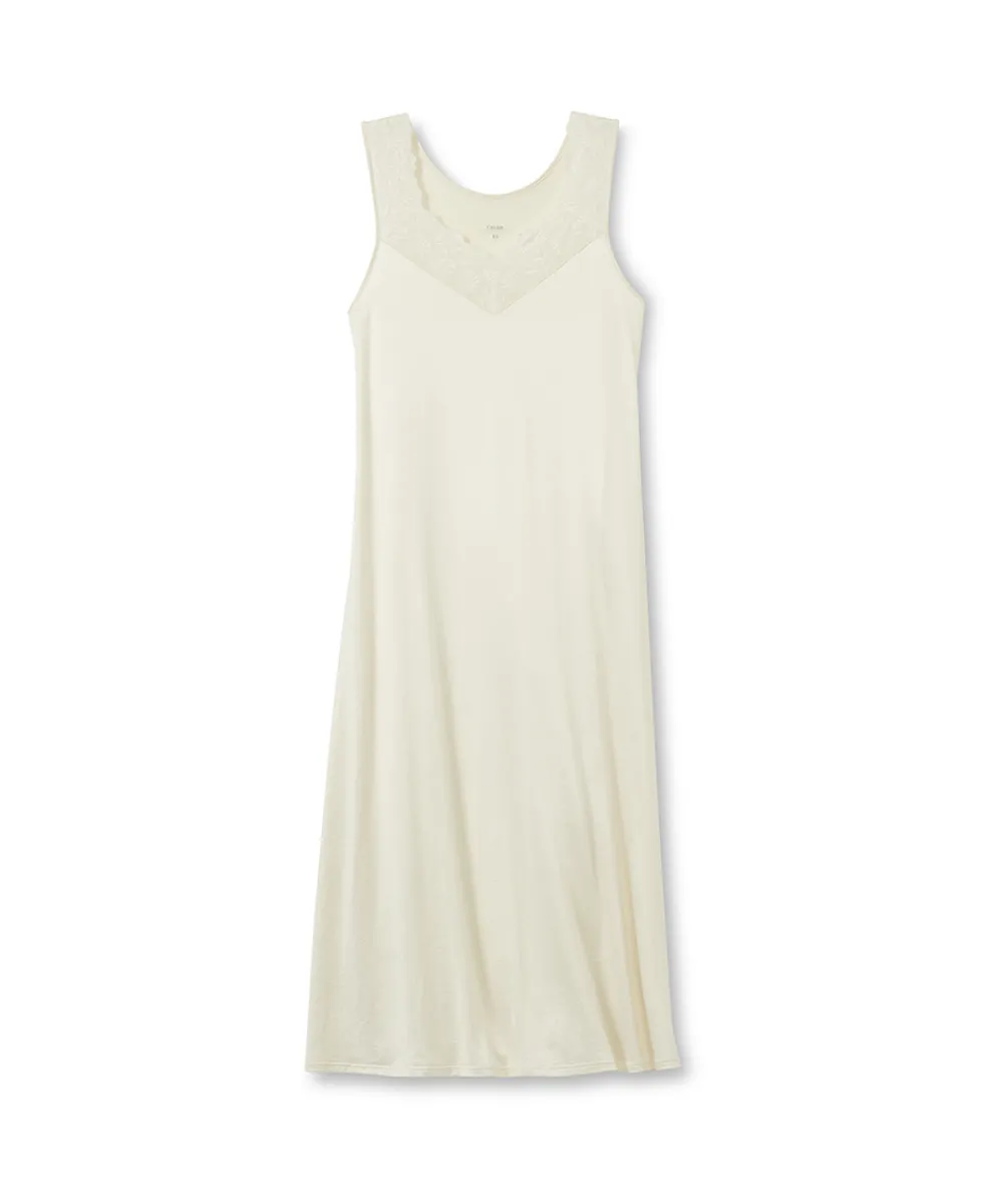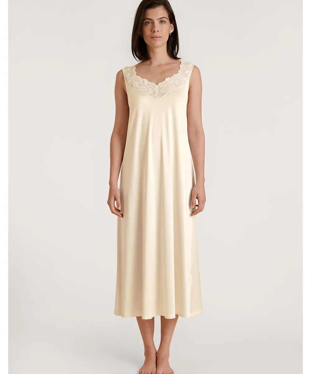 Smuk lang natkjole med blondeindsatser fra Calida. Vær obs på størrelsesguide. Materiale: 57% viskose, 38% bomuld, 5% ROICA™, elastan