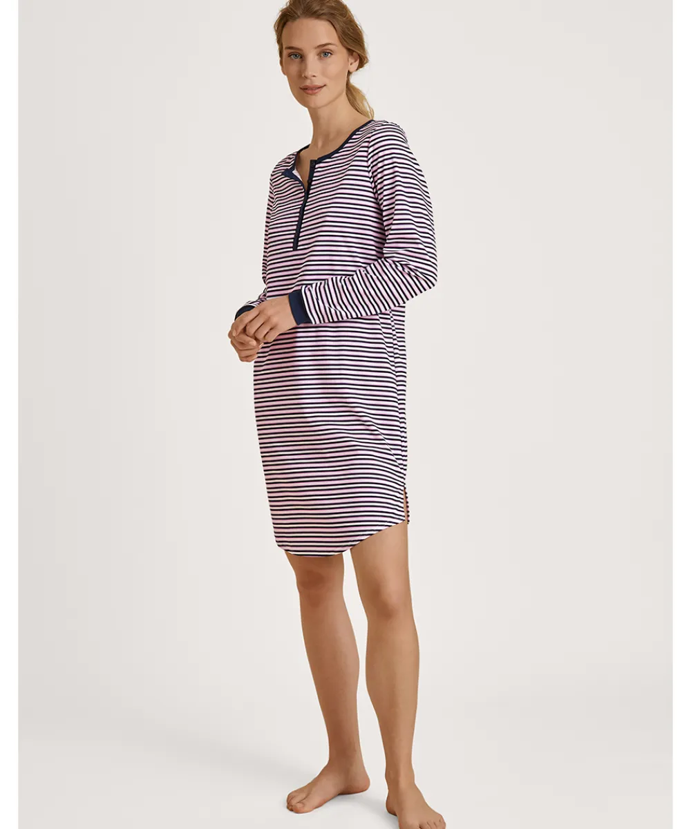 Elegant, kort natkjole/ natskjorte fra Calida med lange ærmer i strikket jersey. Natkjolen er designet i et grafisk stribet print. Vær obs på størrelsesguide. Materiale: 100% bomuld.