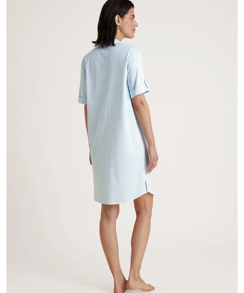 Komfortabel, knælang natkjole med korte ærmer fra Calida. Natkjolen er designet med et skønt stribet print. Natkjolen er lavet i en blød bomuld. Vær obs på størrelsesguide. Materiale: 100% bomuld.