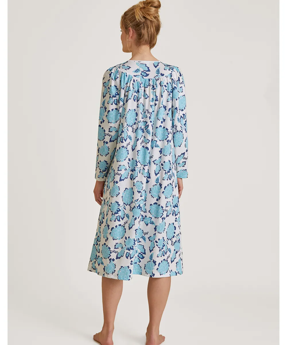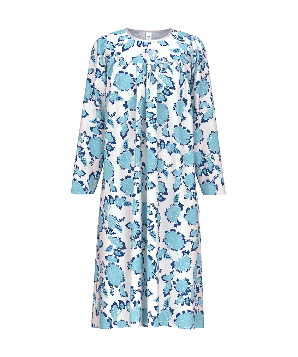 Komfortabel, knælang natkjole med lange ærmer fra Calida. Natkjolen er designet med et skønt print. Natkjolen er lavet i en blød bomuld. Vær obs på størrelsesguide. Materiale: 100% bomuld.