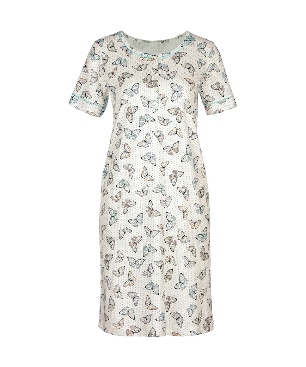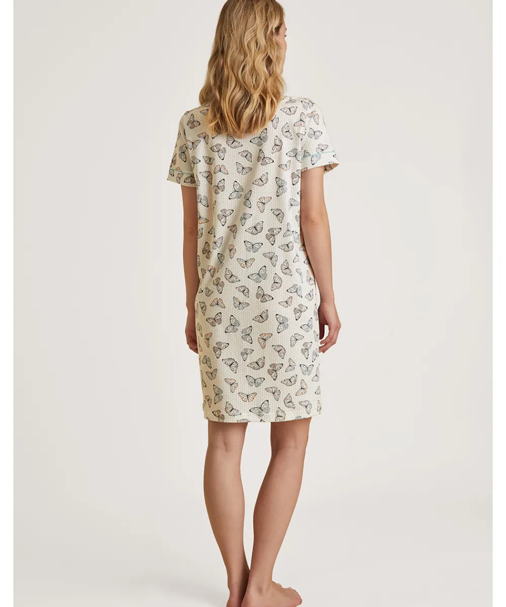 Komfortabel, knælang natkjole med t-shirt ærmer fra Calida. Natkjolen er designet med et skønt print. Natkjolen er lavet i en blød bomuld. Vær obs på størrelsesguide. Materiale: 100% bomuld.