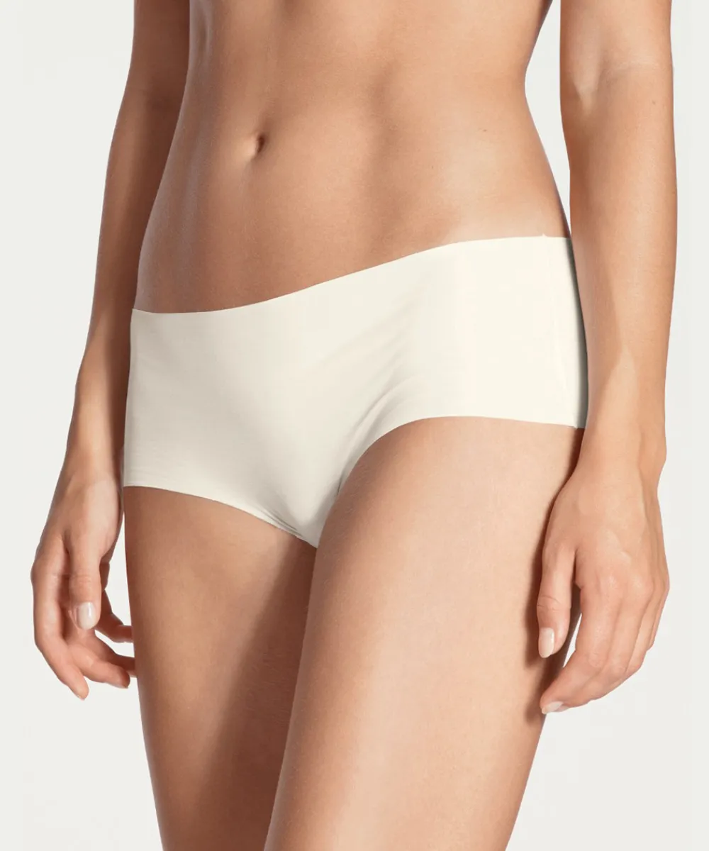 Hipstertrusser uden søm fra Calida. Trussemodellerne hipster og shorts har en vandret benudskæring. Hipstertrussen går lidt op på balden og tegner et vandret snit mens shortsene dækker hele balden. Vær obs. på størrelsesguide. Materiale 80% modal, 20% elastan.