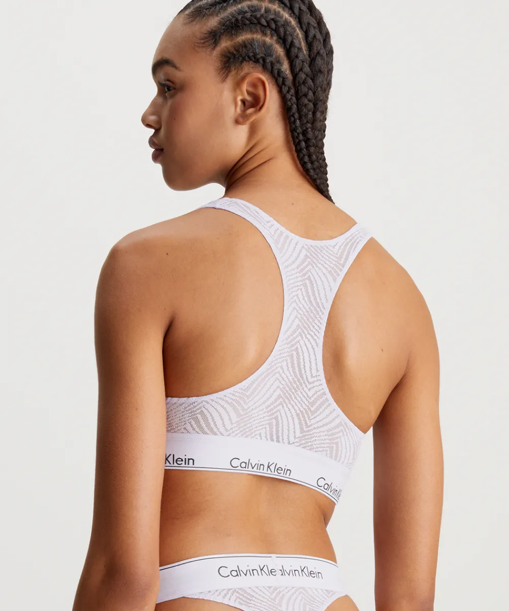 Superkomfortabel blondetop fra Calvin Klein med logokant i linningen. Braletten er designet med bryderryg. Bøjlefri bh’…