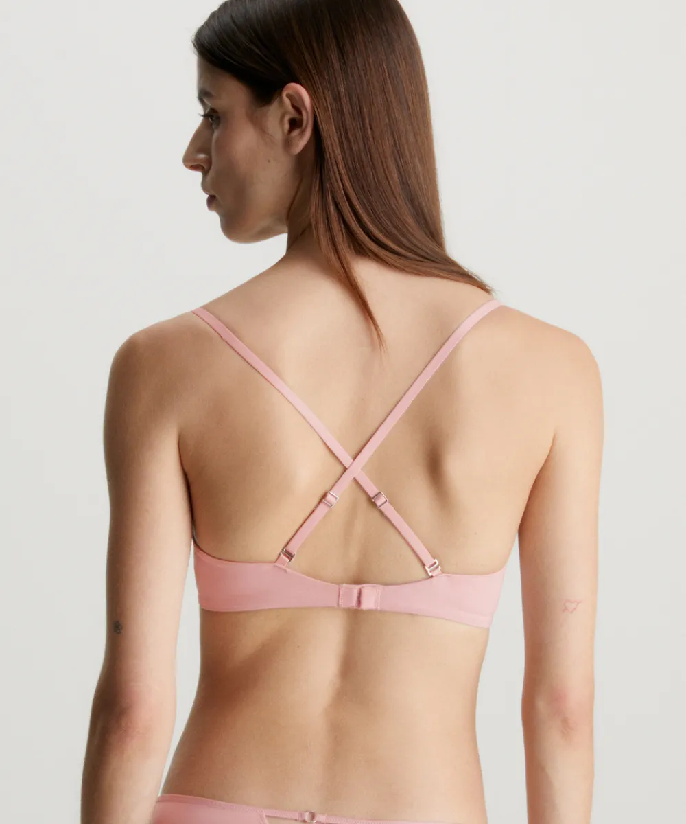 Trekvartskålsbh fra Calvin Klein. Trekvartskålsbh’en giver god støtte til barmen. Den dækker og holder på plads, men din barm er ikke pakket helt ind. Ofte har trekvart-modellen skråt skåret skåle, som ligger sig flot ind til barmen. Bh’en har glatte skåle der ikke ses under stramtsiddende tøj. Stropperne kan krydses på ryggen. Materiale: genanvendt nylon / polyamid 82%, elastan 18%