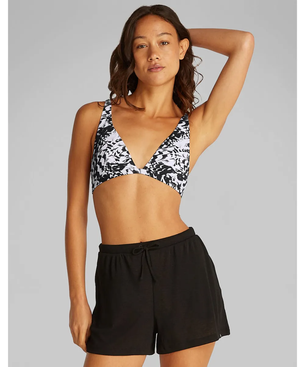 Mønstret Calvin Klein trekantsbikini. Bikinitoppen har let vatteret skåle og er uden bøjle. Badetøj skal gerne sidde stramt, da det udvider sig ved brug i vand. Husk altid at skylle badetøjet op i koldt vand efter brug. Materiale: genanvendt nylon/polyamid 83%, elastan 17%