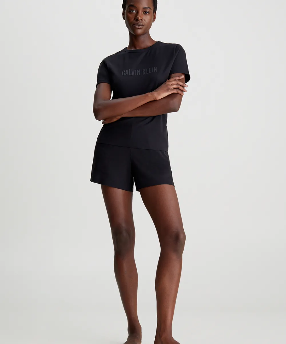 Lækkert Calvin Klein pyjamassæt i bomuld. Sættet består af t-shirt og shorts med Calvin Klein logo. Materiale: bomuld 83%, elastan 17%