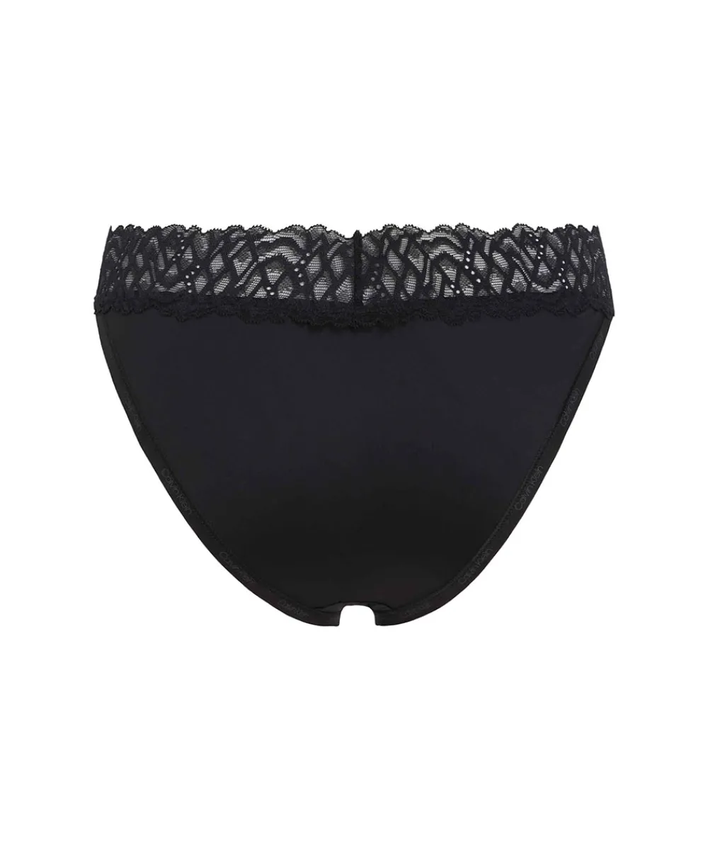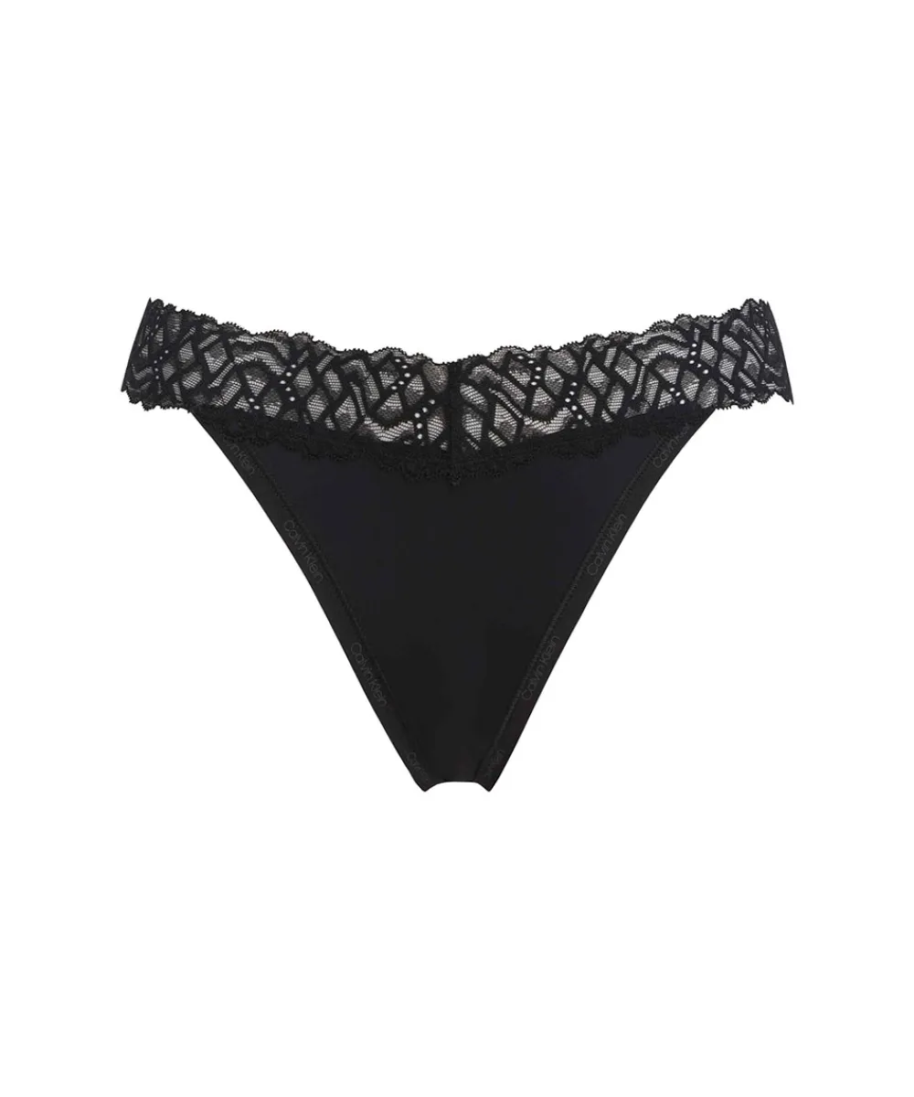 Elegant, blød taitrusse fra Calvin Klein. Taitrussen er designet med yndige blondedetaljer i linningen. Taitrussen er den bedstsolgte og mest almindelige trussetype. Taitrussen har som regel et skråt snit bagpå og dækker det meste af balderne. Et højt bensnit fortil og et smalt sidestykke får benene til at syne længere – altså er modellen god til dig, der gerne vil fremhæve ben og tilføre optisk længde. Materiale: genvendt nylon / polyamid 80%, elastan 20%