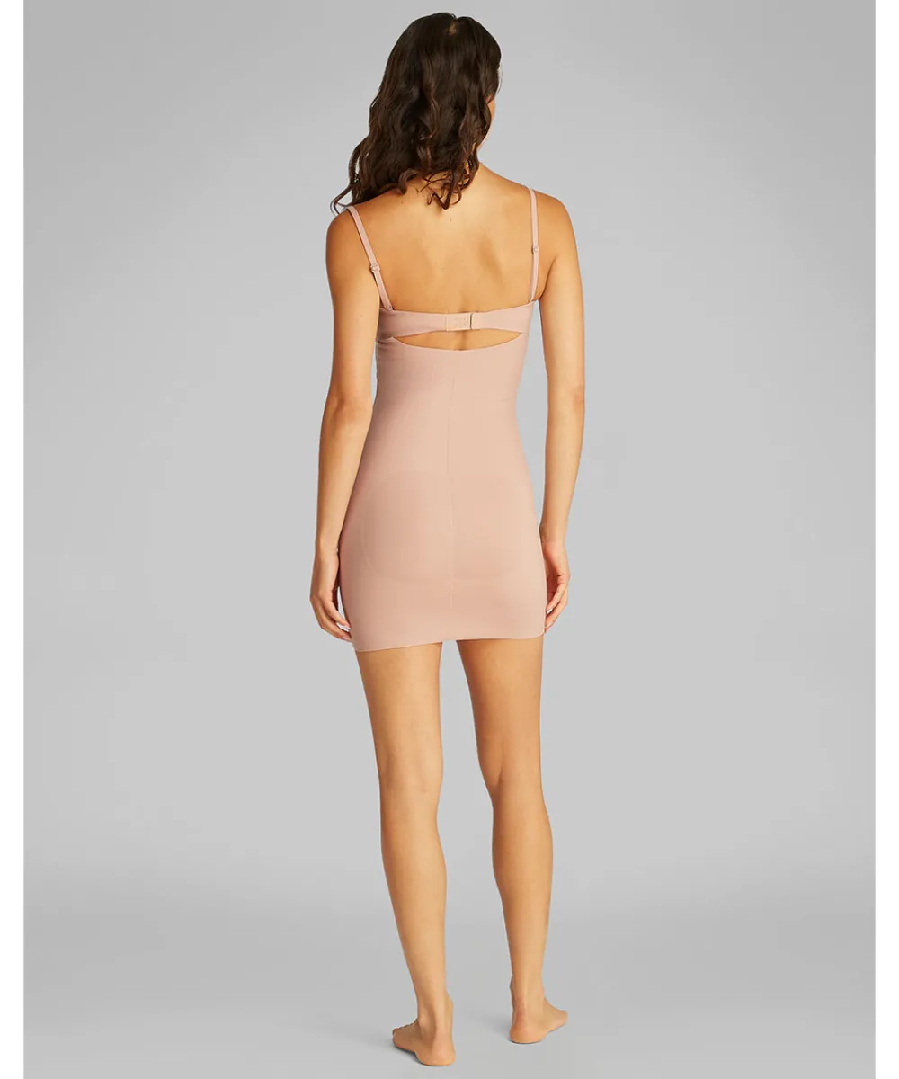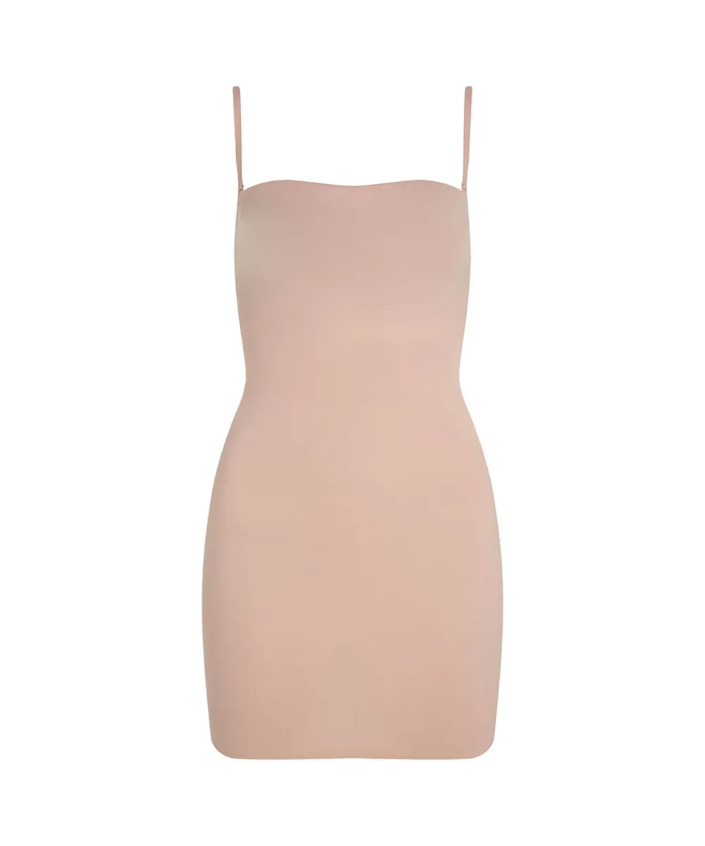 Behagelig og tætsiddende shapewear kjole med tynde stropper fra Calvin Klein. Stropperne kan tages af, så kjolen kan benyttes som stropløs. Det er vigtigt ikke at vælge en størrelse for stor, da shape-effekten ellers vil gå tabt. Materiale: elastan 55% , polyamid 45%