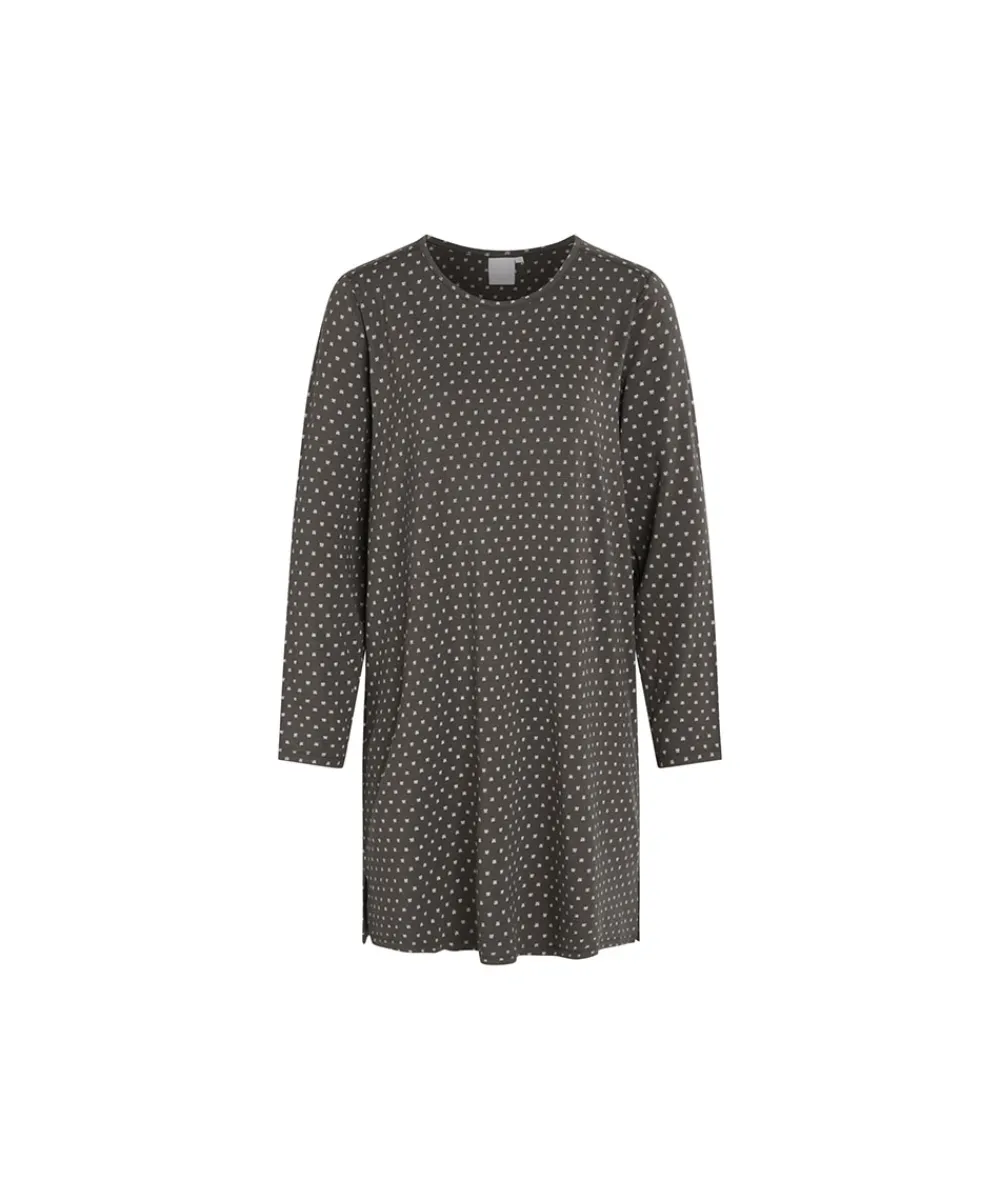 Langærmet natkjole fra CCDK Copenhagen. Natkjolen er lavet i en blød Ecovero viskose-kvalitet. Natkjolen er designet i en behagelig løs pasform og dekoreret med fine prikker. Materiale: 95% Ecovero viskose, 5% elastan