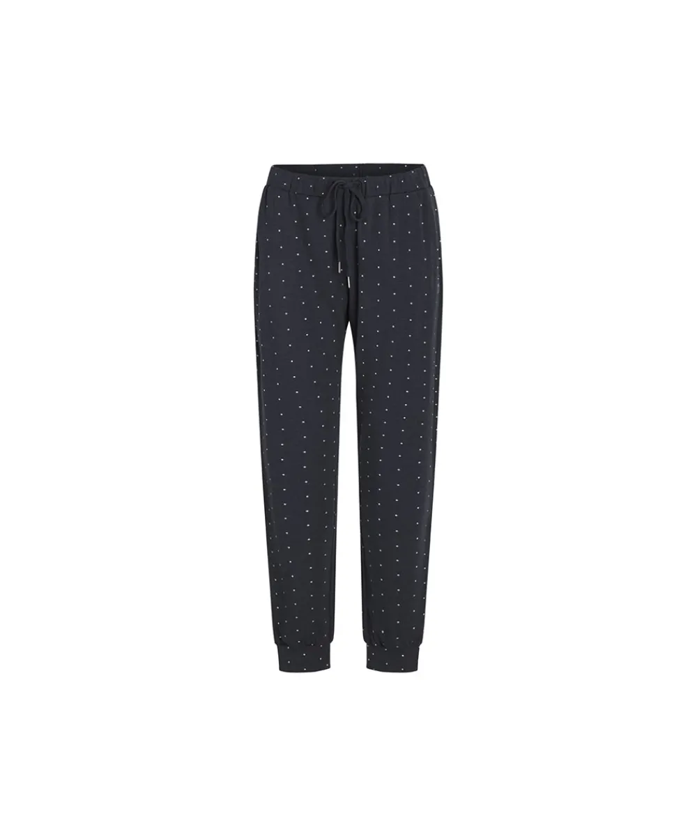 Loungewear bukser fra CCDK Copenhagen. Bukserne er lavet i en lækker Ecovero viskose-kvalitet, og de er dekoreret med fine prikker. Brug dem med en T-shirt for at få et sæt eller brug din egen basic top for at fuldende looket. Materiale: 68% viskose (bambus), 27% bomuld (økologisk), 5% elastan