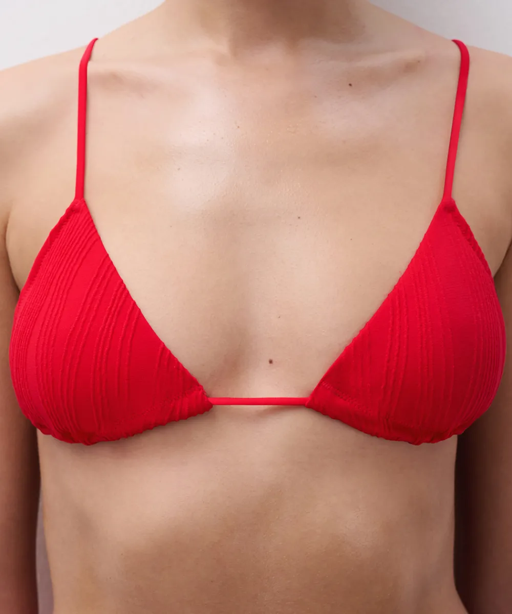 Klassisk trekants bikinitop fra Chantelle Pulp. Bikinioverdelen er designet med let vatterede skåle og er uden bøjle. Bikinitoppens tynde stropper og omkredsen er justerbare og kan justeres så den sidder godt på dig. Badetøj skal gerne sidde stramt, da det udvider sig ved brug. Husk altid at skylle badetøjet op i koldt vand efter brug. Materiale: 80% nylon, 20% elastan.