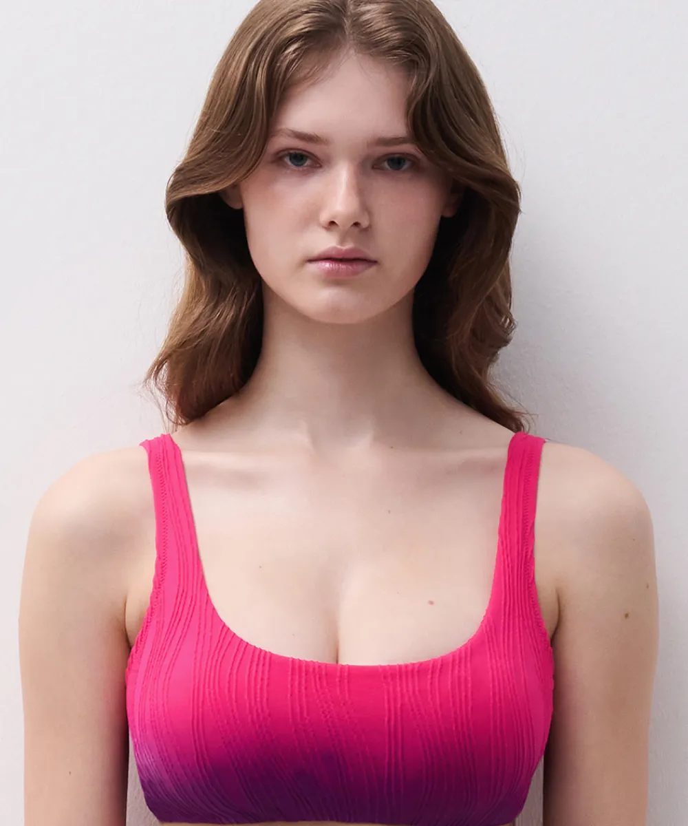 Bikinitop fra Chantelle Pulp i en skøn farve. Bikinioverdelen er designet med let vatterede skåle og er uden bøjle. Bikinitoppens bredere stropper og omkredsen er justerbare og kan justeres så den sidder godt på dig. Badetøj skal gerne sidde stramt, da det udvider sig ved brug. Husk altid at skylle badetøjet op i koldt vand efter brug. Materiale: 80% nylon, 20% elastan.