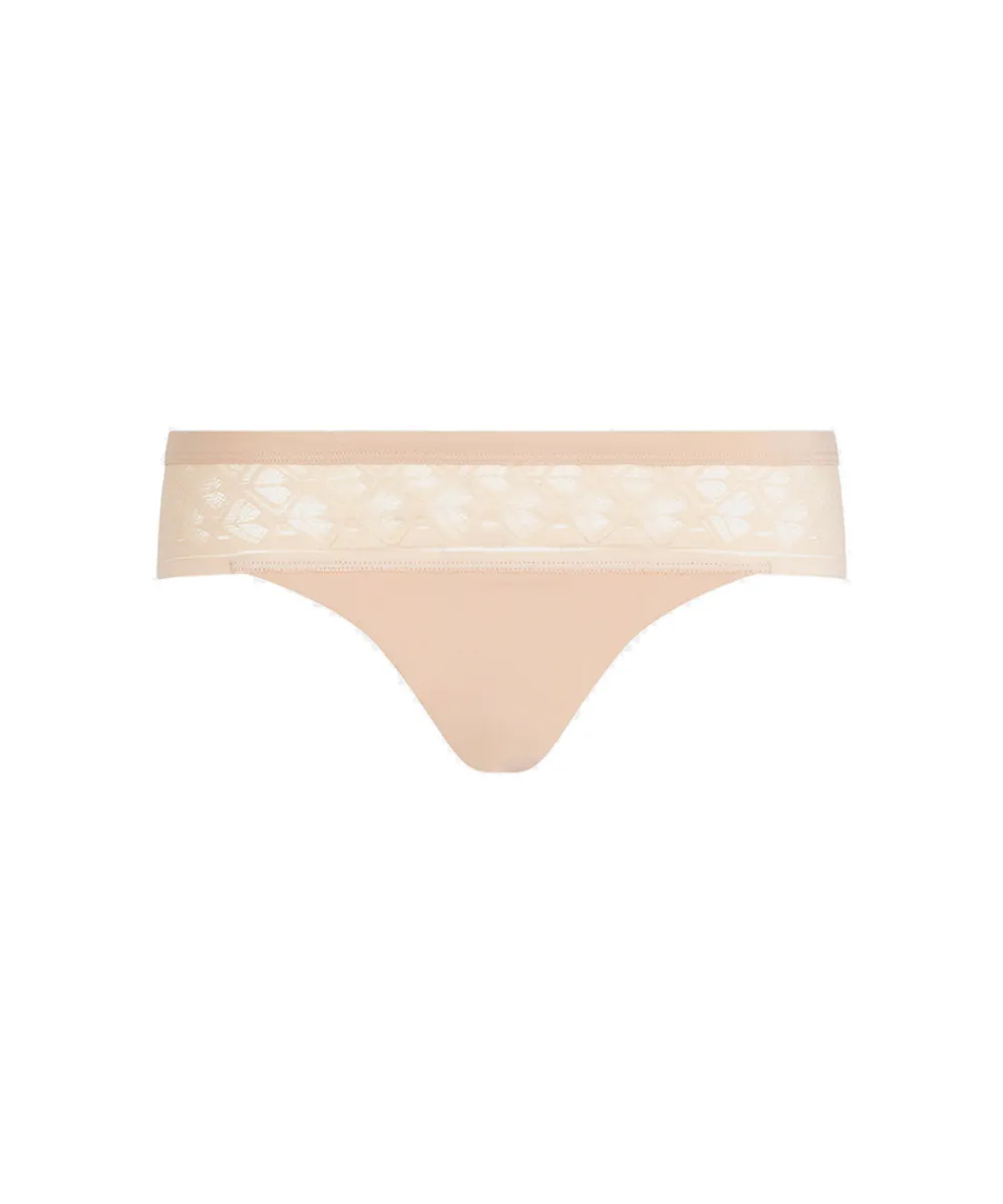 Elegant hipstertrusse fra Chantelle EasyFeel med detaljer af blonde på både for- og bagside. Trussemodellerne hipster og shorts har en vandret benudskæring. Hipstertrussen går lidt op på balden og tegner et vandret snit mens shortsene dækker hele balden. Materiale: blonde 87,5% nylon 12,5% elastan, strik 72% nylon 28% elastan, skridtkile 100% bomuld.