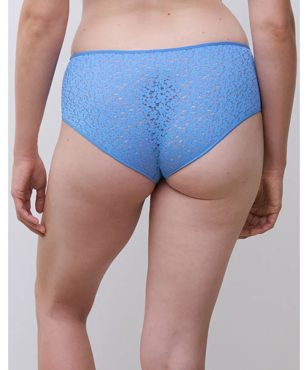 Elegant hipstertrusse med detaljer af blonde fra Chantelle EasyFeel. Trussemodellerne hipster og shorts har en vandret benudskæring. Hipstertrussen går lidt op på balden og tegner et vandret snit mens shortsene dækker hele balden. Materiale: blonde 87,5% nylon 12,5% elastan, strik 72% nylon 28% elastan, skridtkile 100% bomuld