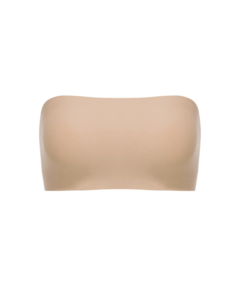 Komfortabel top uden stropper. Designet i et blødt, lækkert og strækbart materiale. Toppen tilpasser sig kroppens facon og størrelse. Toppen er sømløs og ideel under tætsiddende tøj. Bandeau og stropløs top. Materiale: primær materiale 80% nylon 20% elastan. Strik linning front 92% polyester 8% elastan.