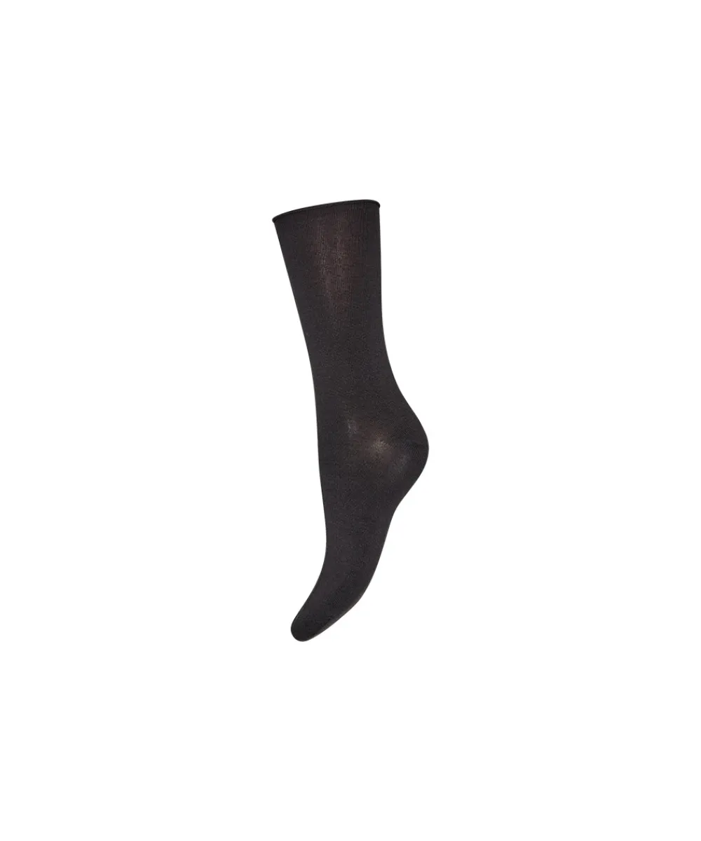 Ankelstrømpe produceret i bambus viskose fra Decoy. Strømpen er afsluttet med rullekant i skaftet og ingen elastik. Fi…