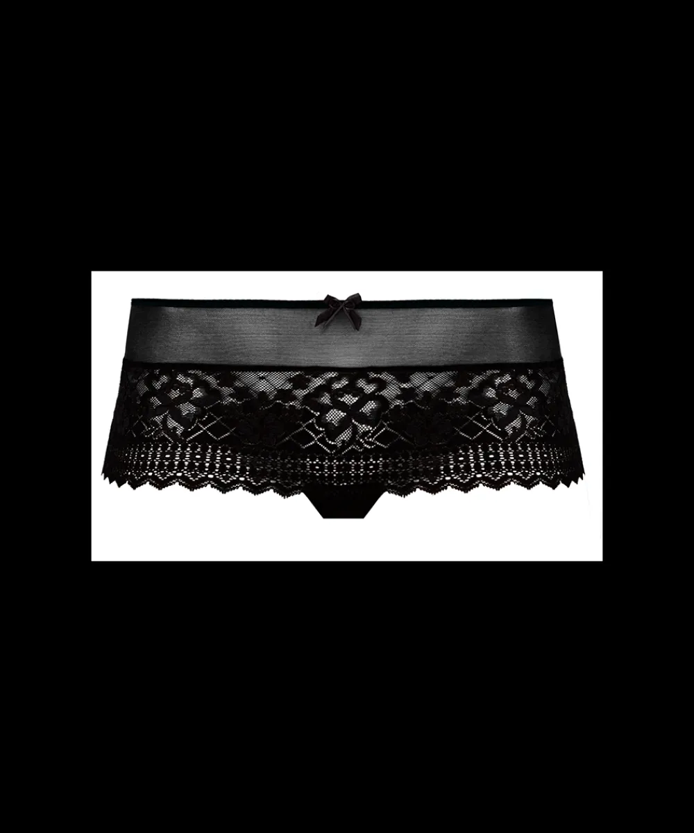 Feminin shorty trusse, med en smuk sømløs blonde, på den nederste del af trussen. Trussemodellerne hipster og shorts har en vandret benudskæring. Hipstertrussen går lidt op på balden og tegner et vandret snit mens shortsene dækker hele balden. Særligt populære er hipstermodellerne med fine franske blonder, som tegner et smukt mønster hen over balderne.