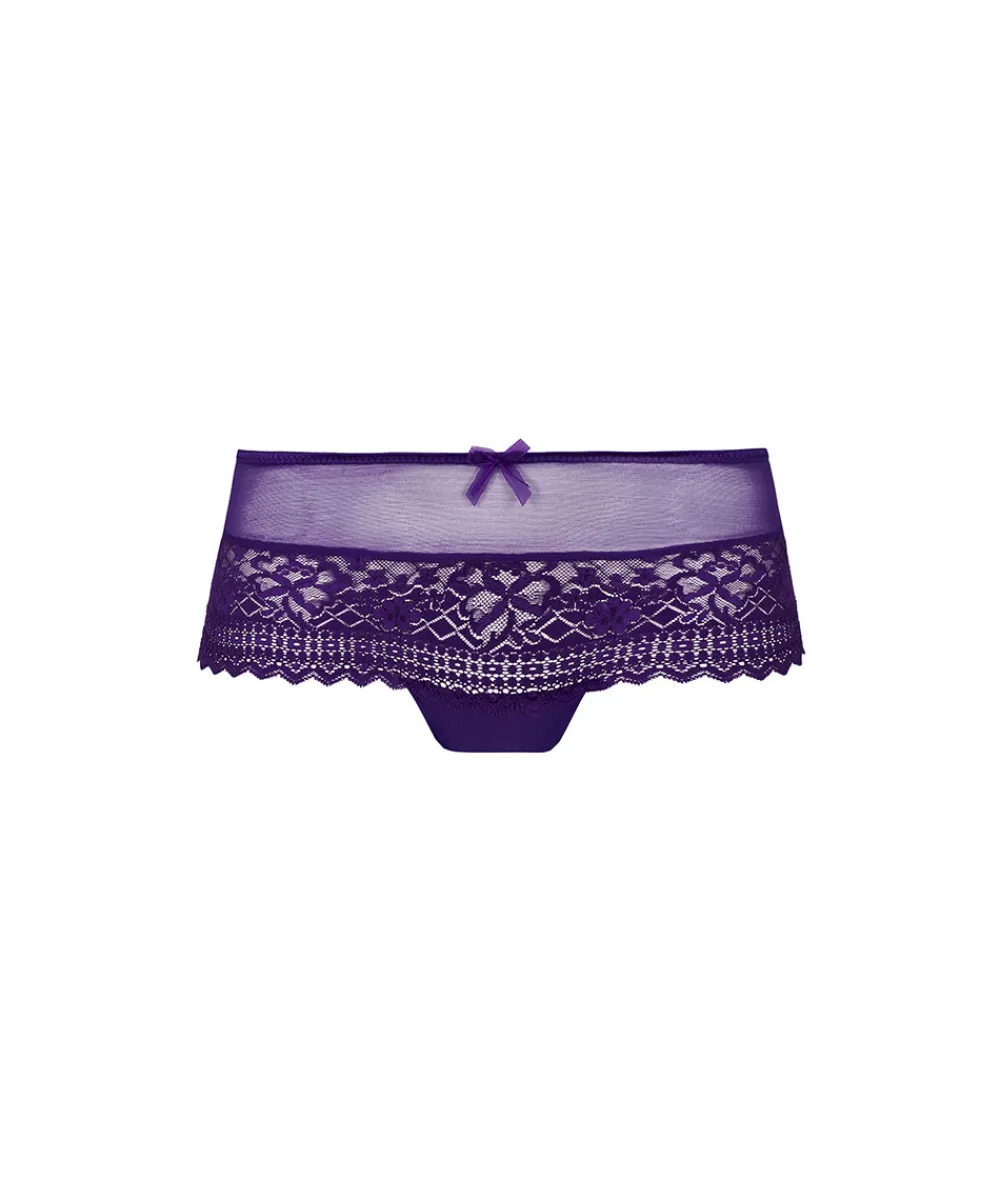 Feminin shorty trusse, med en smuk sømløs blonde, på den nederste del af trussen. Trussemodellerne hipster og shorts har en vandret benudskæring. Hipstertrussen går lidt op på balden og tegner et vandret snit mens shortsene dækker hele balden. Særligt populære er hipstermodellerne med fine franske blonder, som tegner et smukt mønster hen over balderne.