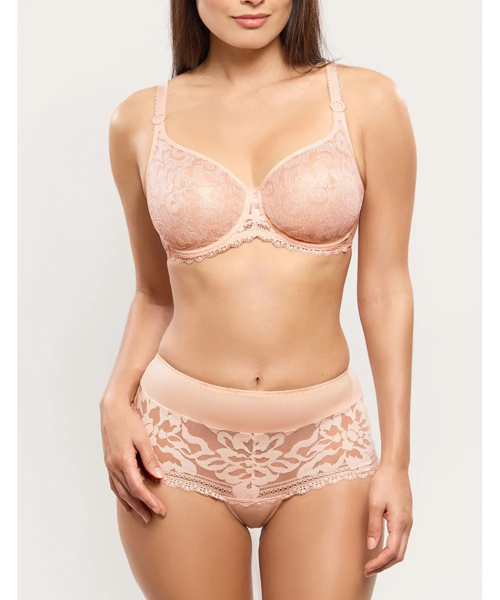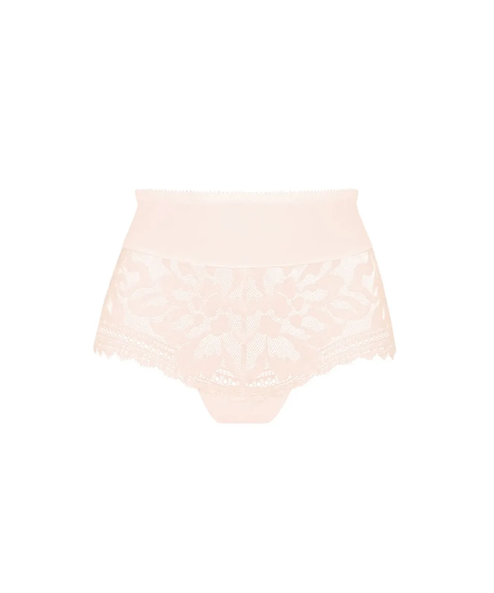 Elegant højtaljet trusse med fine detaljer og en sømløs blonde på den nederste del af trussen. Maxitrussen er en højtaljet trusse med bredt sidestykke og lavt bensnit. Maxitrussen dækker den nederste del af maven og passer derfor godt til tøj, der går op i taljen. Obs. Vær opmærksom på at trussen kan være stor i størrelsen, så vi vil anbefale at man går en størrelse ned.