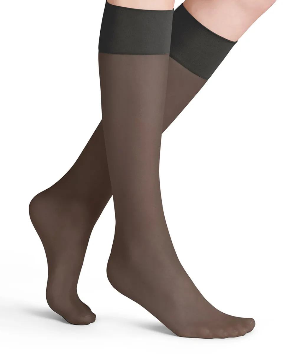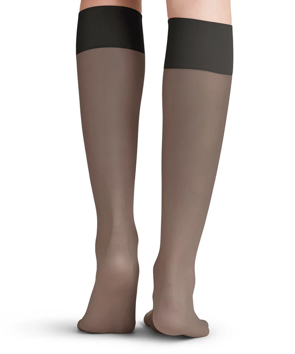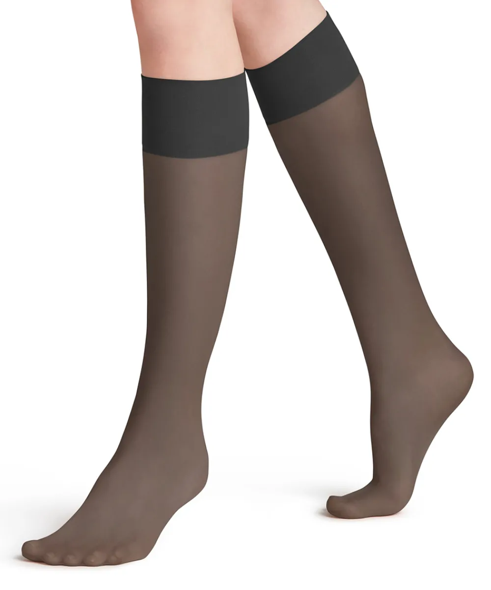 Tynd og let knæstrømpe i 20 denier med silikone i kantbåndet, der modvirker strømpen i at glide ned. Strømpen har en mat overflade, der giver et elegant look. Behagelig strømpe med ekstra bløde og sensitive kantbånd. Strømpen har forstærkede tåsektioner, der gør den mere slidstærk. Materiale: 89% polyamid, 11% elastan.