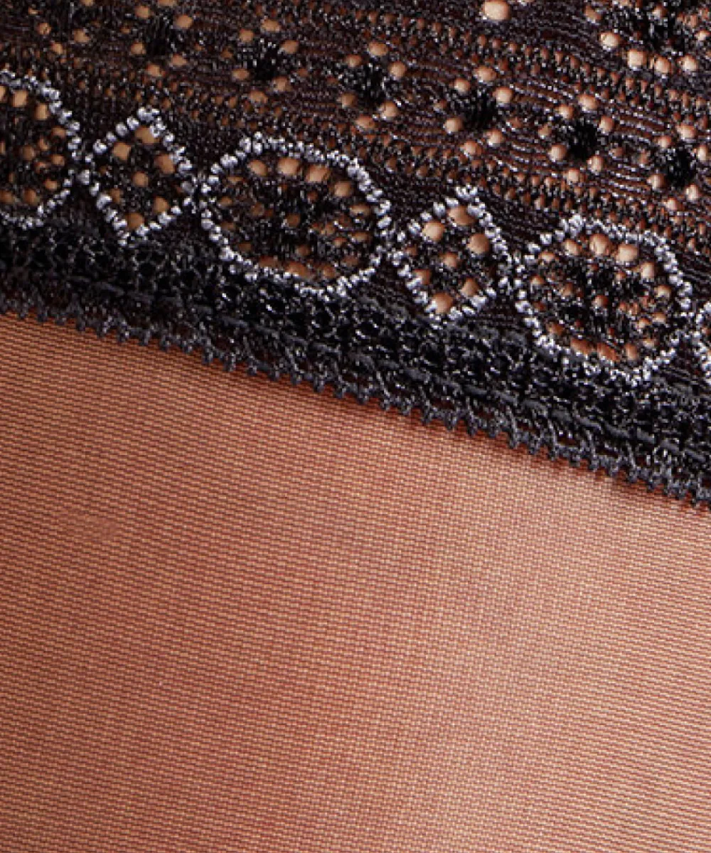 Transparent og mat selvsiddende strømpe. Nylonstrømpen har en komfortabel og blød linning, flade sømme og forstærke…
