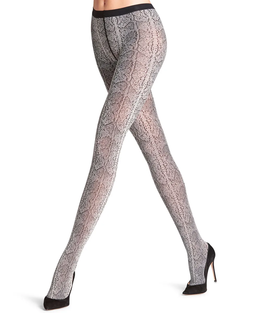 Fine strømpebukser fra Falke i 50 denier. Disse moderigtige strømpebukser er et absolut højdepunkt og er perfekte til vinterens festligheder såvel som til sommerdage. Denne strømpe imponerer med et særligt fint og jævnt reptilinspireret dyremønster, der kan kombineres på mange måder og er den perfekte ledsager til hverdagen. Materiale: 89% bomuld (25% genanvedt), 11% elastan
