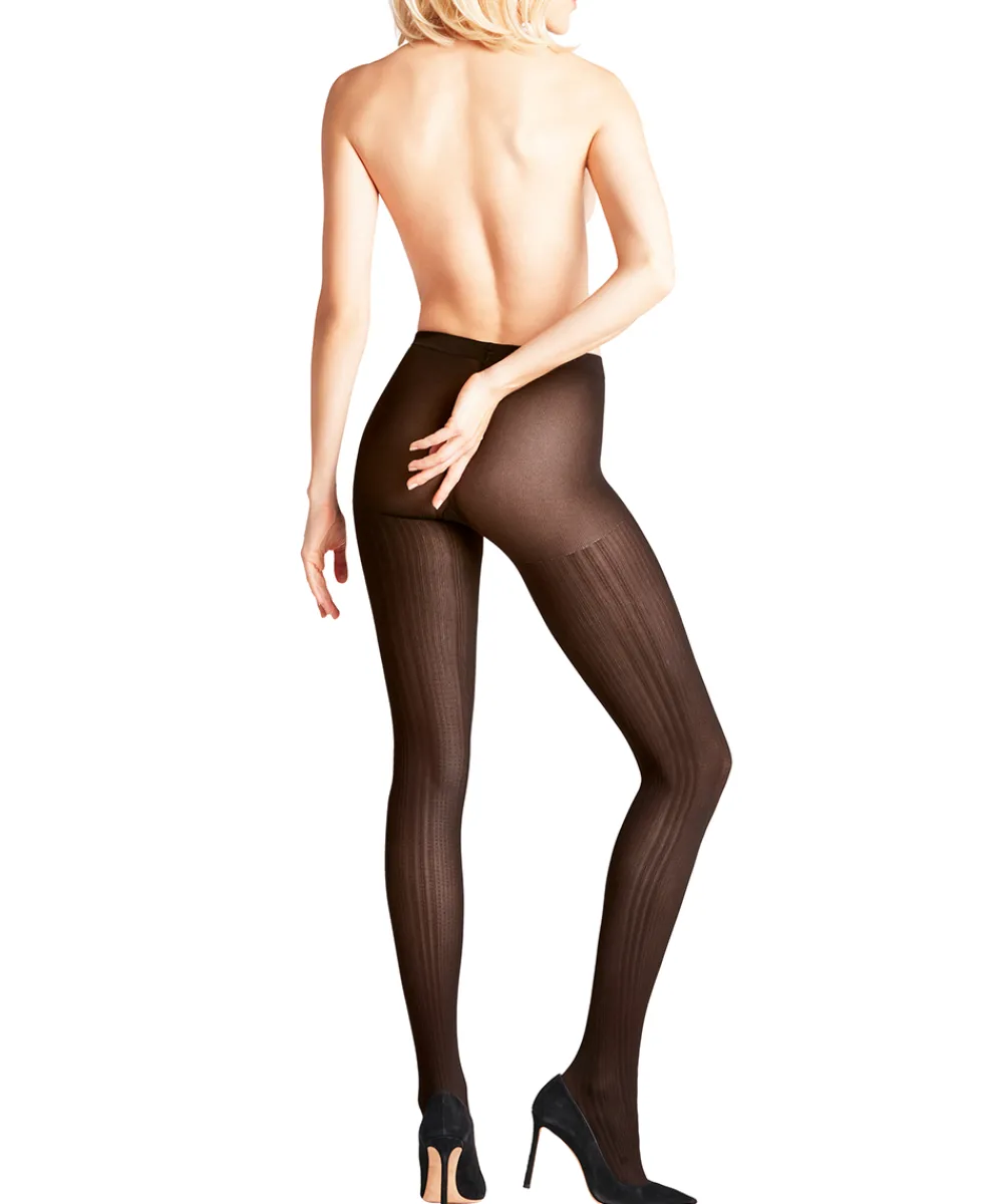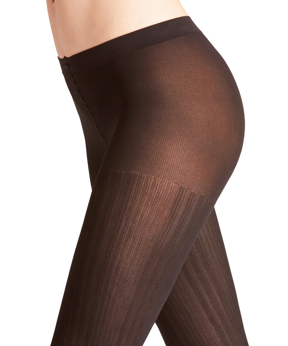 Fine tights/ strømpebuks/ nylonstrømpe med en trendy ribstruktur, der optisk og visuelt gør dine ben længere. The FALKE Perfect Fit sikrer optimal komfort med blødt, elastisk linning. Materiale: 95% polyamid, 5% elastan.