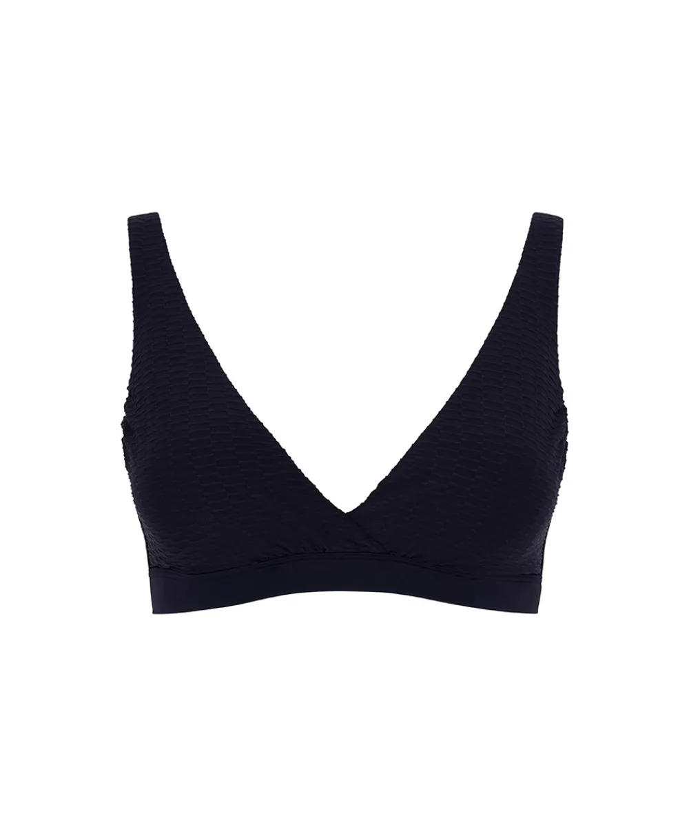 Fin og klassisk bikinitop med dyb udskæring fra Femilet. Bikinioverdelen har justerbare stropper og er designet uden bøjle. Badetøj skal gerne sidde stramt, da det udvider sig ved brug. Husk altid at skylle badetøjet op i koldt vand efter brug. Materiale: 72% nylon, 28% elastan
