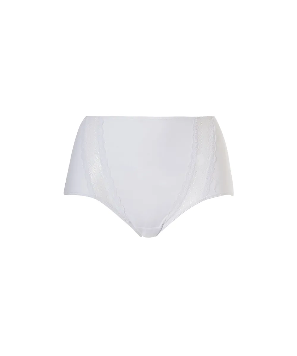 Basis højtaljet taitrusse lavet i bomuld i høj kvalitet. Trussen er superfnt strikket, komfortabel og yderst holdbar. Serien kombinerer på bedste vis behagelige pasformer, blød bomuld og simple blondedetaljer for optimal komfort og et let feminint hverdagslook. Snittet og komforten gør den til en oplagt hverdagstrusse. Materiale: primær materiale 95% bomuld 5% elastan.