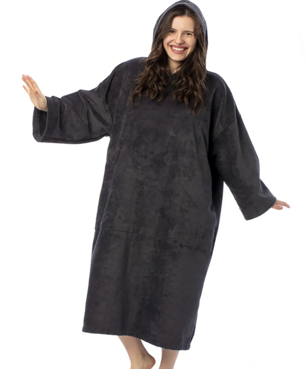 Skøn lang poncho kåbe fra JBA Kåber. Kåben er designet i en løs pasform med lange ærmer og hætte. Med en rummelig pasform uden faconsyning, er ponchoen perfekt til vinterbadning. Materiale: 45% bomuld, 55% polyester