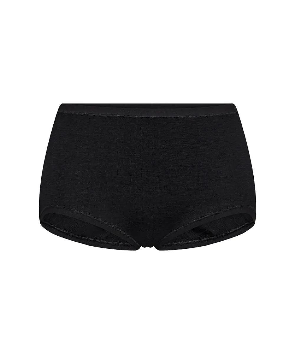 Højtaljet uld trusse fra JBS of Denmark. Maxitrussen er en højtaljet trusse med bredt sidestykke og lavt bensnit. Maxitrussen dækker den nederste del af maven og passer derfor godt til tøj, der går op i taljen. Materiale: 100% uld.