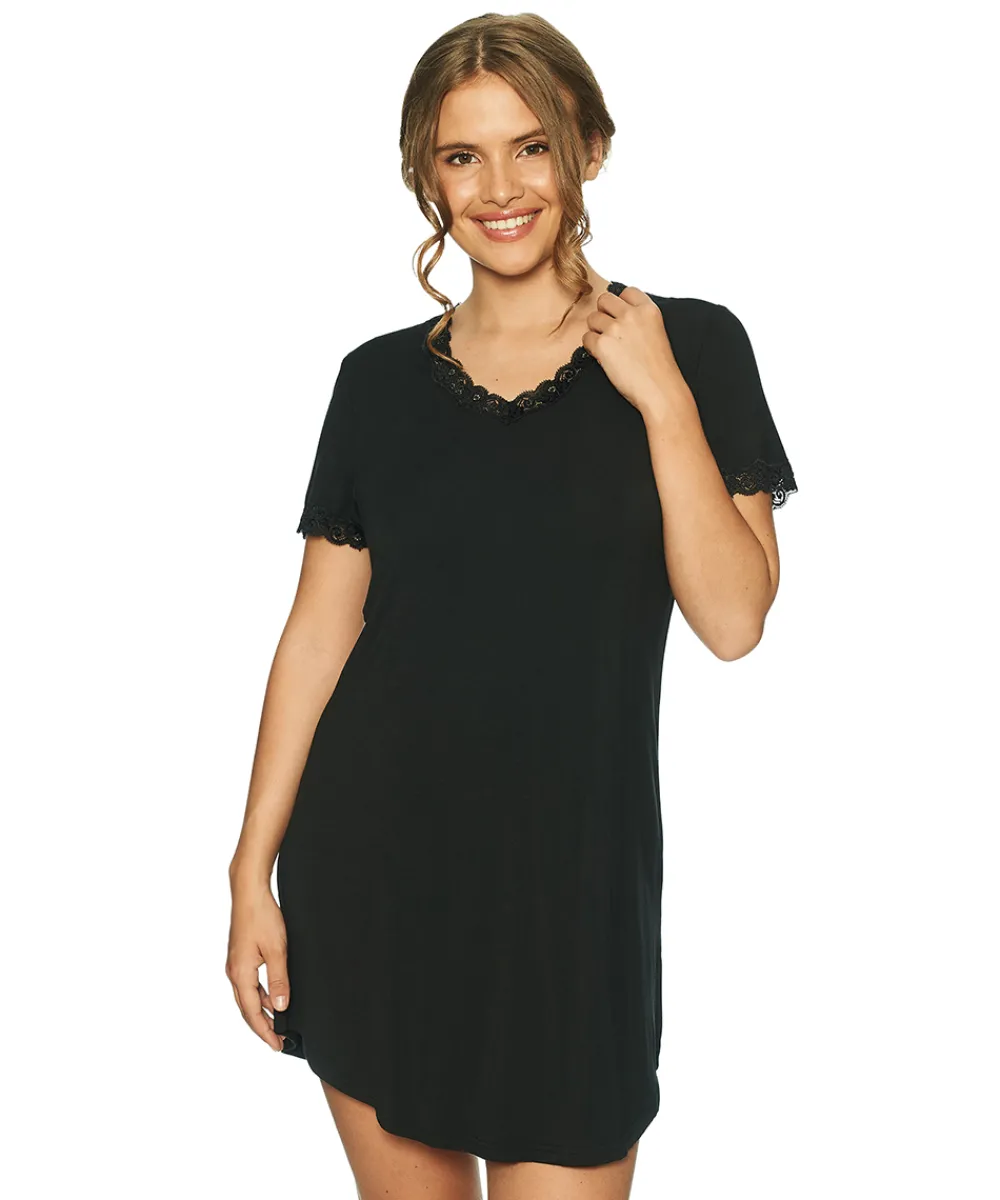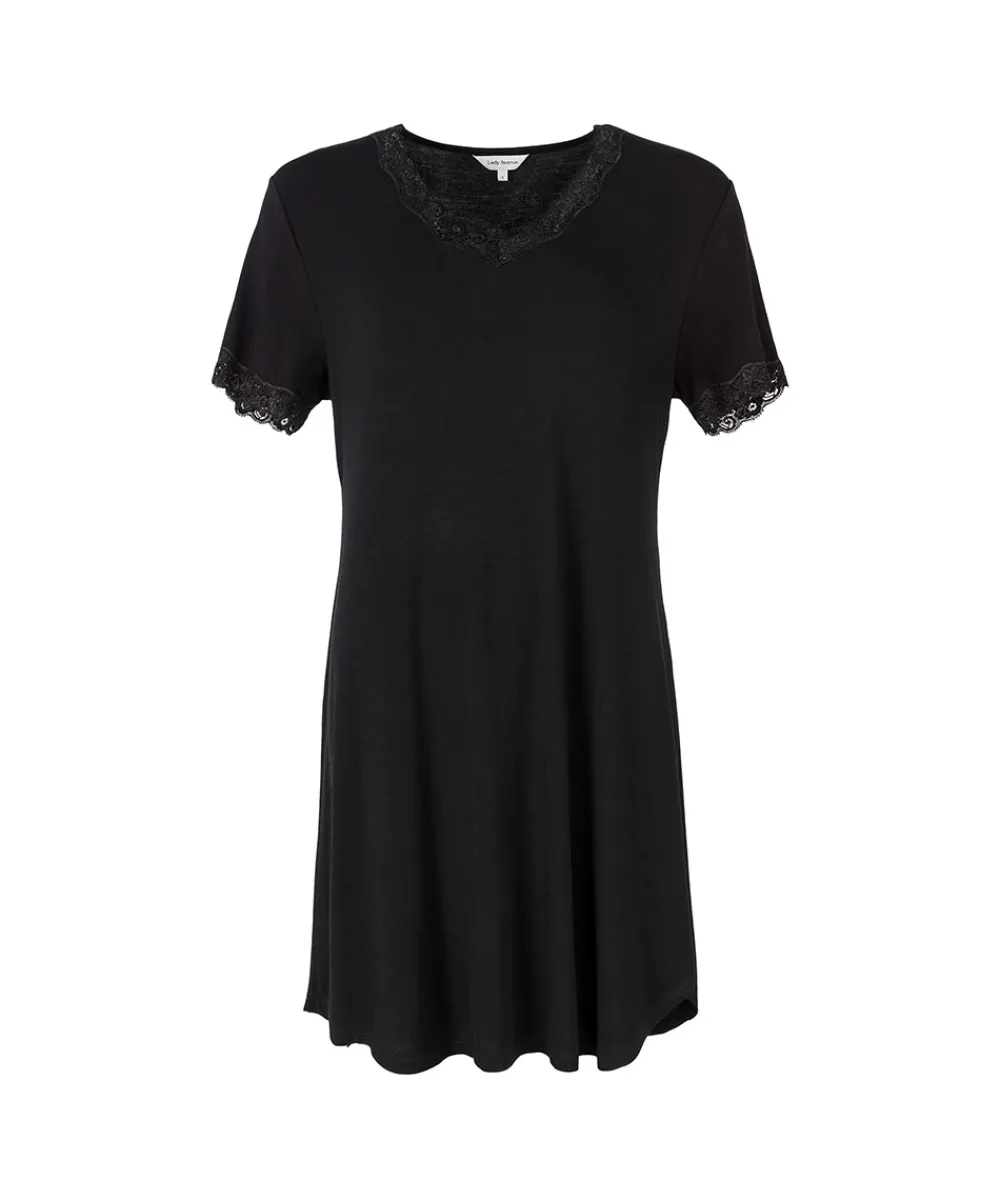 Lady Avenue Natkjoler/ Underkjoler/ Chemiser<02 BLACK – LA – Bamboo Homewear Bamboo Short Sleeve Nightdress