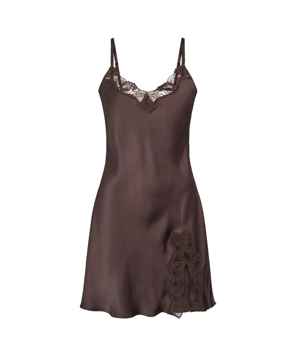 Lady Avenue Natkjoler/ Underkjoler/ Chemiser<190 COFFEE BEAN – LA – Silk Woven Slip W/Lace