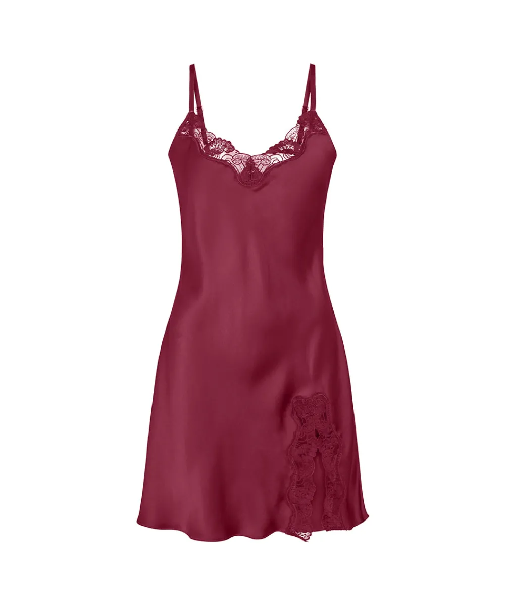 Lady Avenue Natkjoler/ Underkjoler/ Chemiser<194 RUBY RED – LA – Silk Woven Slip W/Lace