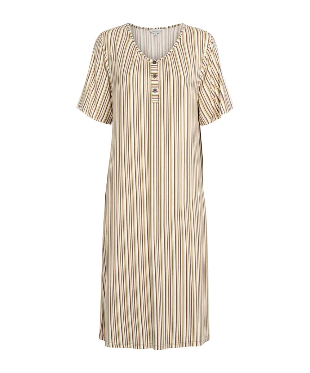 Lady Avenue Natkjoler/ Underkjoler/ Chemiser<648 MOCCA/KIWI STRIPE – Bambus Homewear Long Nightdress, Short-sleeve