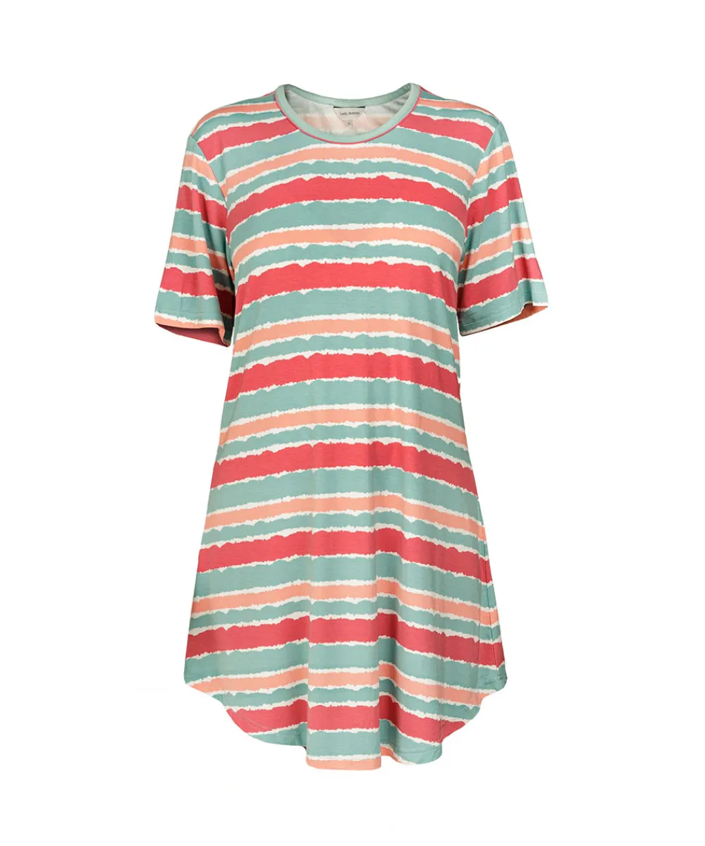 Behagelig bambus natkjole med korte ærmer fra Lady Avenue. Natkjolen er designet med striber, afrundet bund for bedre form og feminint look. Natkjolen har en løs pasform og meget behagelig at have på. En af de største fordele ved tøj lavet af bambusfibre er de antibakterielle egenskaber, som betyder at tøjet er særligt velegnet til sensitiv hud og allergikere. Nattøj lavet af bambus føles køligere, når det er varmt og omvendt. Materiale: 65% bambus, 28% bomuld, 7% elastan