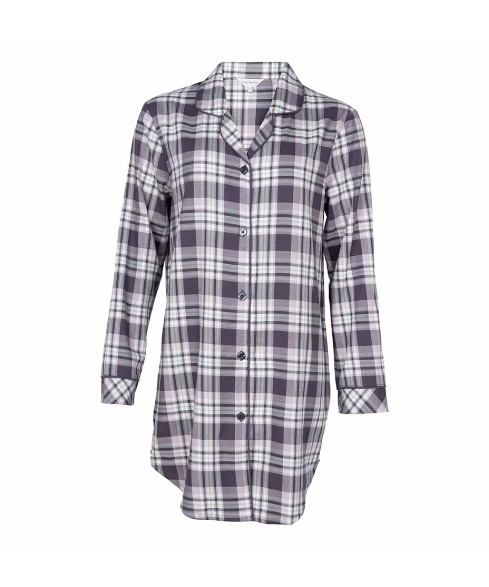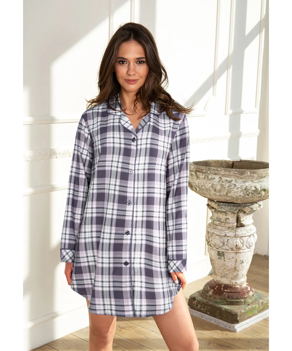 Lady Avenue Natskjorter/ Big Shirts<1034 GRAPHITE CHECKS – Homewear – Cotton & satin Cotton Flannel Nightshirt