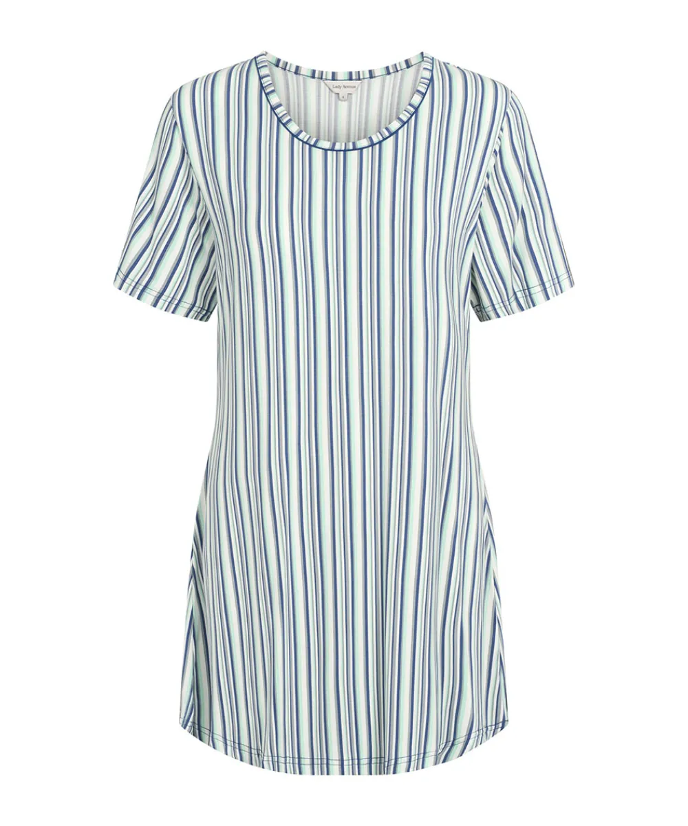 Skøn natkjole i bambus fra Lady Avenue i stribet print. Natkjolen er designet med korte ærmer, rund hals og buet bund….