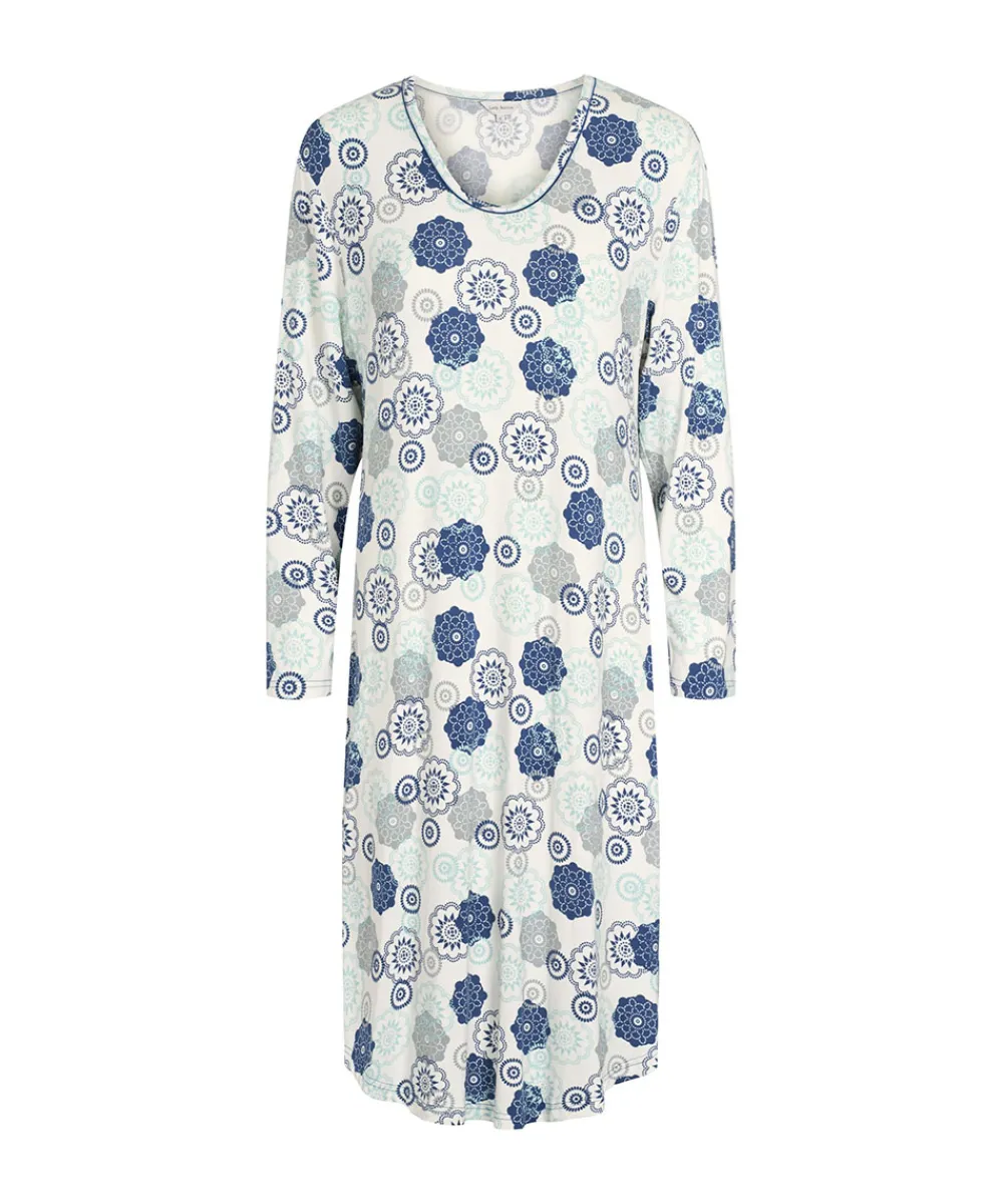 Lady Avenue Natskjorter/ Big Shirts|Natkjoler/ Underkjoler/ Chemiser<655 BLUE/GREY FLORAL – Bambus Homewear Long Sleeve Nightdress