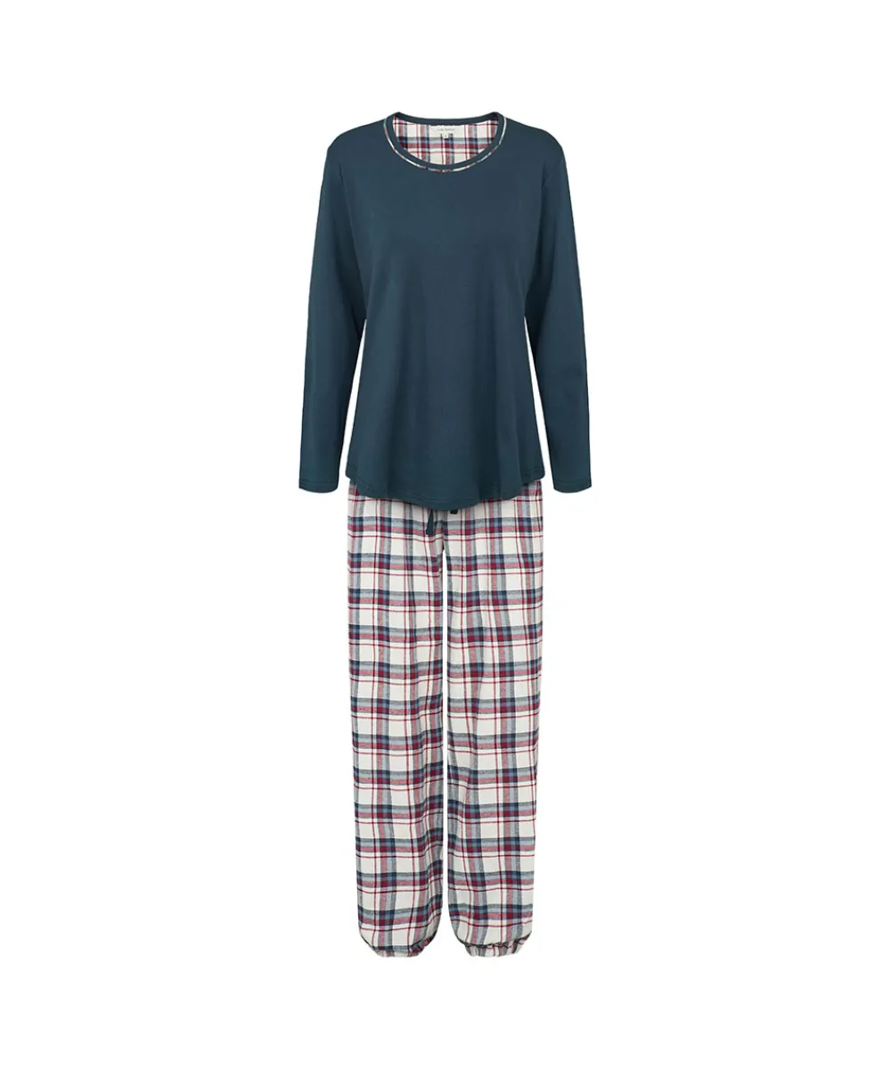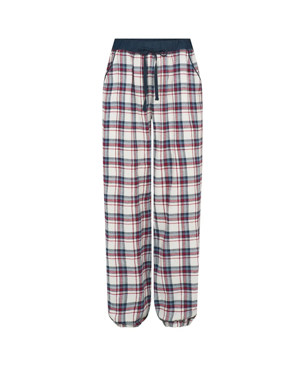 Pyjamassæt fra Lady Avenue med bluse og buks i 100% flannel bomuld. Blusen er designet med lange ærmer og bukserne i ternet design med snører i livet. Materiale: 100% bomuld.