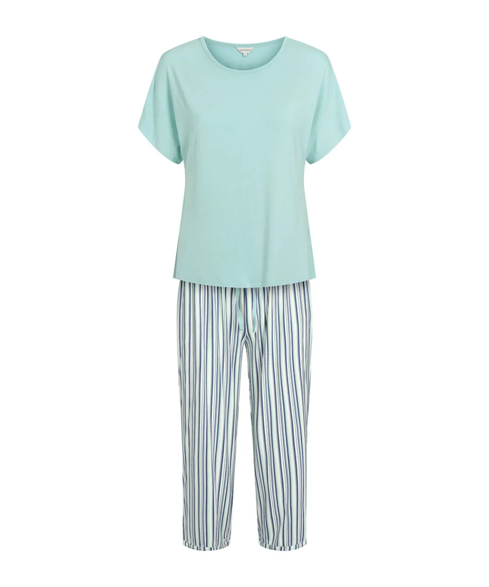 Lady Avenue Pyjamas/ Loungewear<650 BLUE/GREY STRIPE – Bambus Homewear Short-sleeve Pyjamas