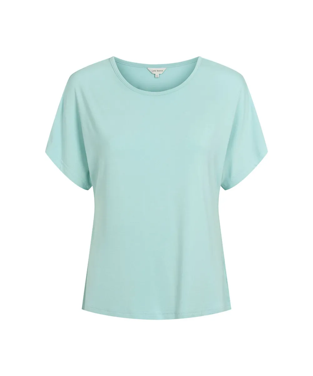 Pyjamas fra Lady Avenue lavet i blødt bambusmateriale. Pyjamassen består af en t-shirt og pyjamasbukser med en blød e…