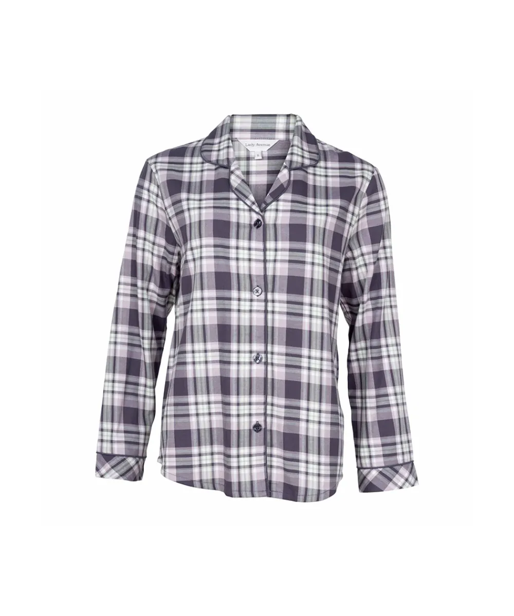 Lady Avenue Top/ Loungeshirt/ Pyjamas<1034 GRAPHITE CHECKS – Homewear – Cotton & satin Cotton Flannel Pyjamas
