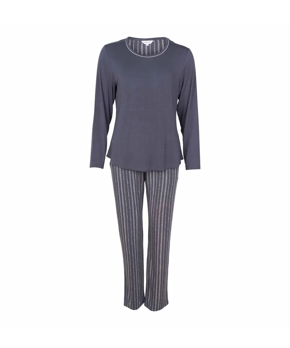 Lady Avenue Top/ Loungeshirt/ Pyjamas<1036 GRAPHITE/ROSE – Bamboo Homewear Long Sleeve Pyjamas