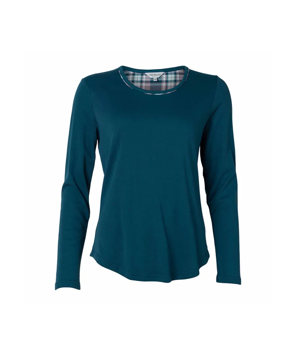 Lady Avenue Top/ Loungeshirt/ Pyjamas<180 DARK PETROL – Homewear – Cotton & satin Cotton Flannel Pyjamas