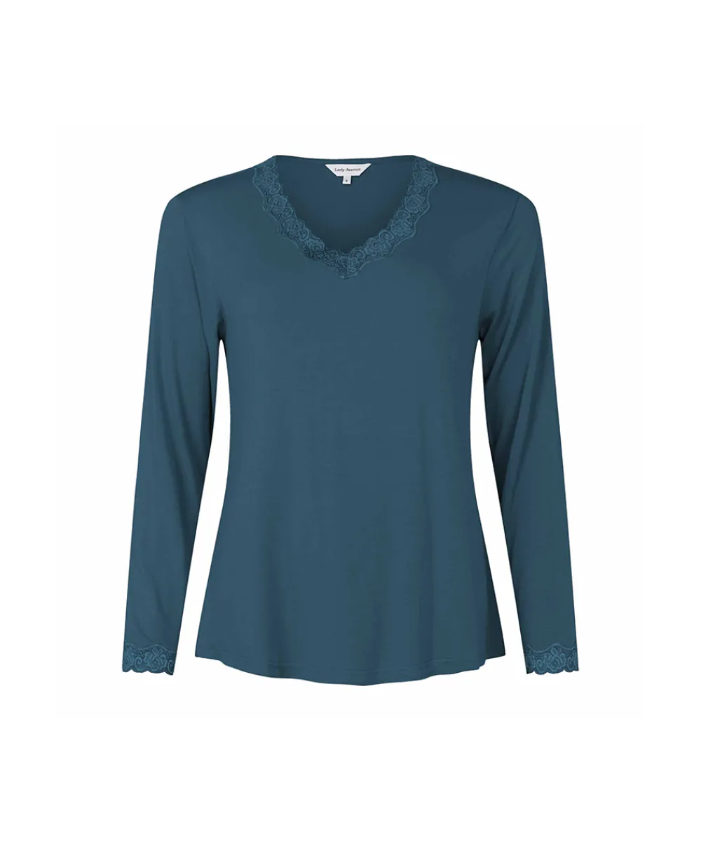 Lady Avenue Top/ Loungeshirt/ Pyjamas|Pyjamas/ Loungewear<180 DARK PETROL – Bamboo Homewear Bamboo Long Sleeve Pyjamas Wit