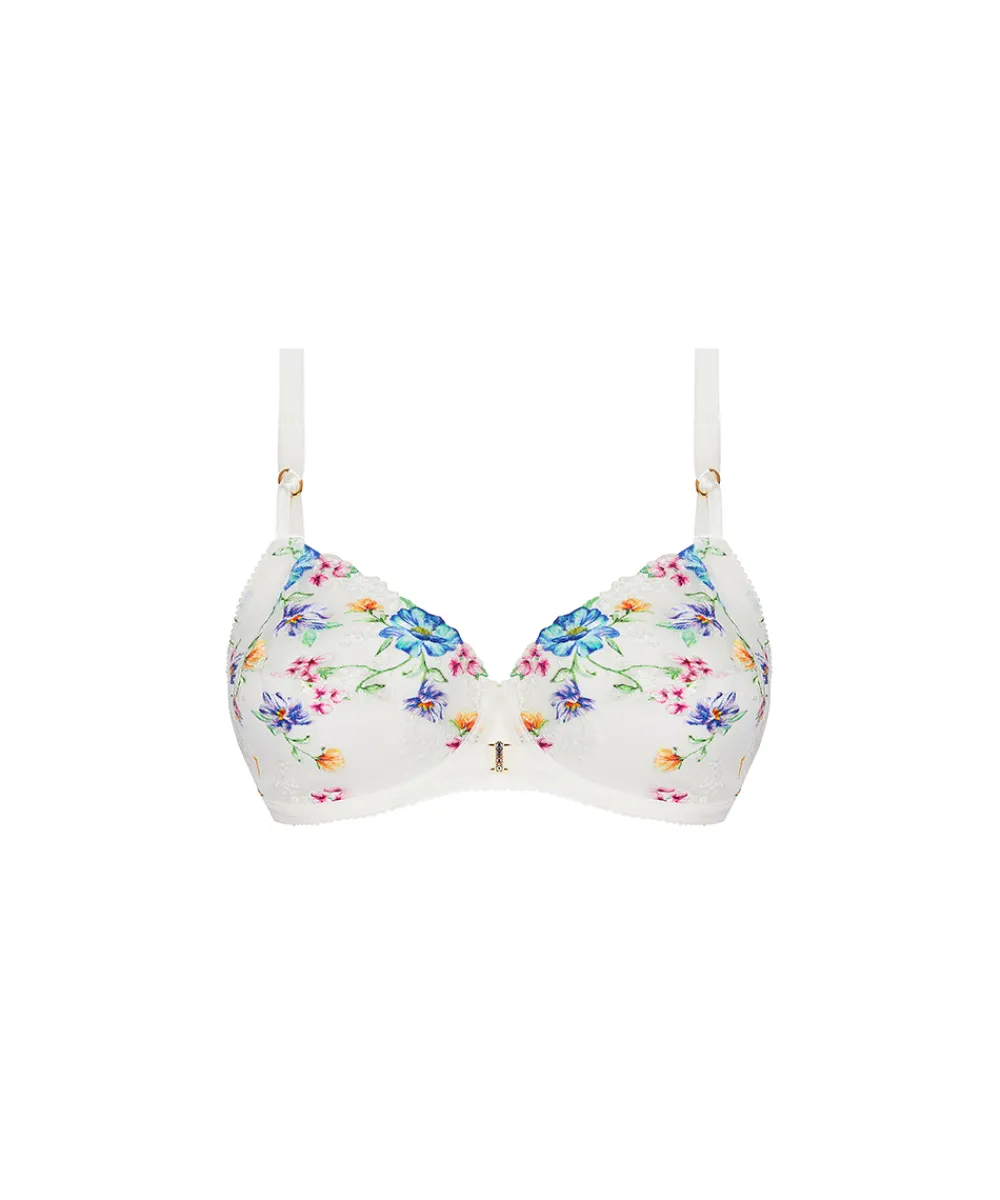 Yndig fuldskålsbh fra Lise Charmel designet med broderinger i sommerlige farver. Bh’en er tilpasset den fyldige barm fo…